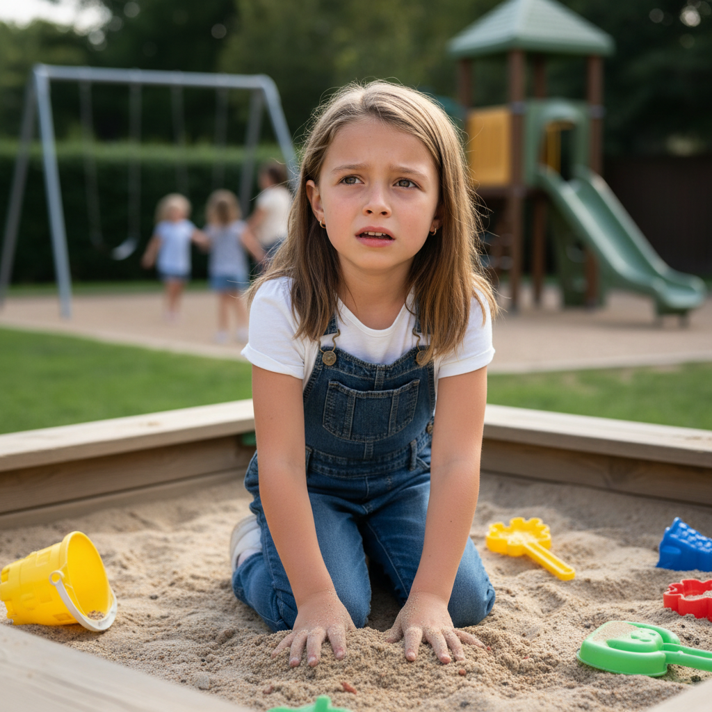 Ava's heart sank as she searched the empty sandbox where she'd left her bright red toy airplane.
